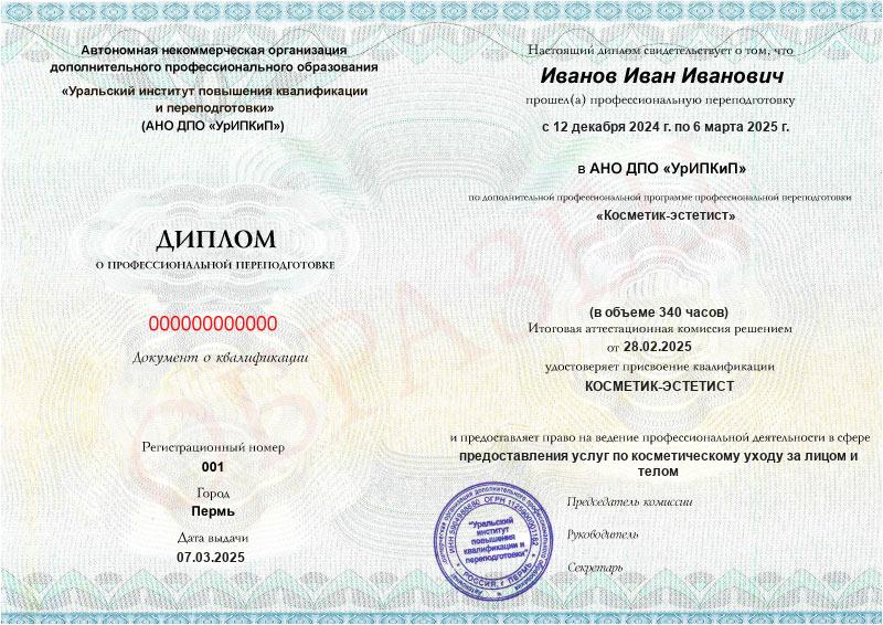 Да, дипломы и удостоверения оформляются в соответствии с действующим законодательством РФ. Документы печатаются на специальных бланках, заверяются печатью АНО ДПО «УрИПКиП».