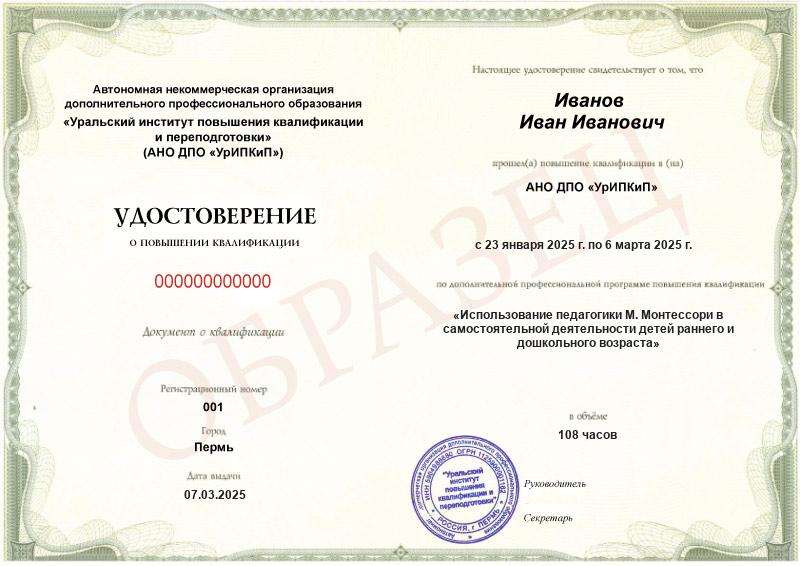 - Повышали квалификацию в АНО ДПО «УрИПКиП» – вам будет выдано удостоверение.