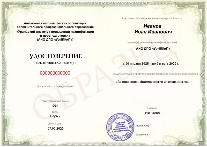 Курс обучения Ветеринарная фармакология и токсикология (110ч)
